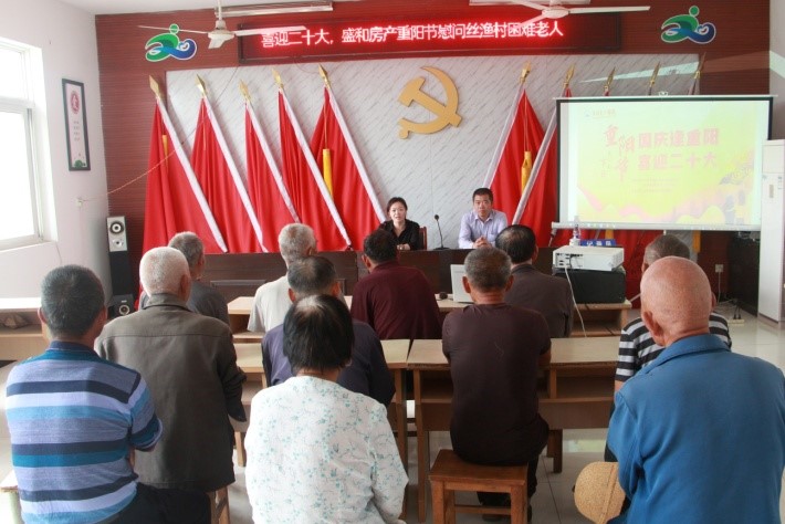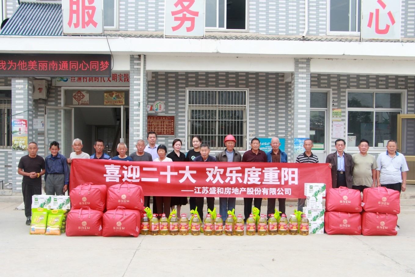 9月23日重陽佳節前夕,為充分發揮省級文明單位示范帶動作用,弘揚中華民族尊老敬老的傳統美德,盛和房產聯系到幫扶聯建單位如皋絲漁村,開展“喜迎二十大,歡樂度重陽”慰問活動,為共計十五戶年邁孤寡老人及困難家庭送去節日慰問品,并向他們致以溫暖的節日問候。